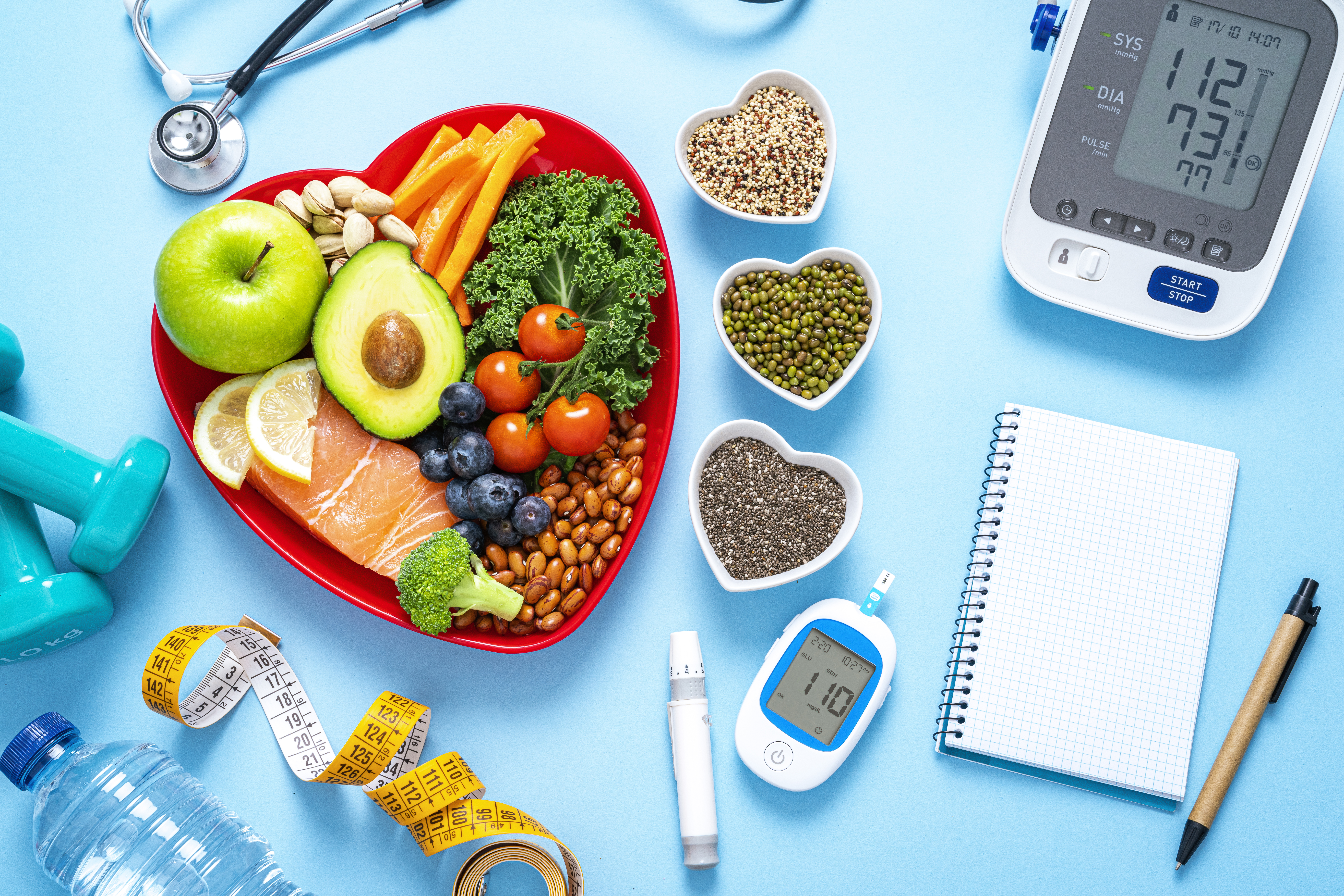 Healthy food in a love shaped bowl